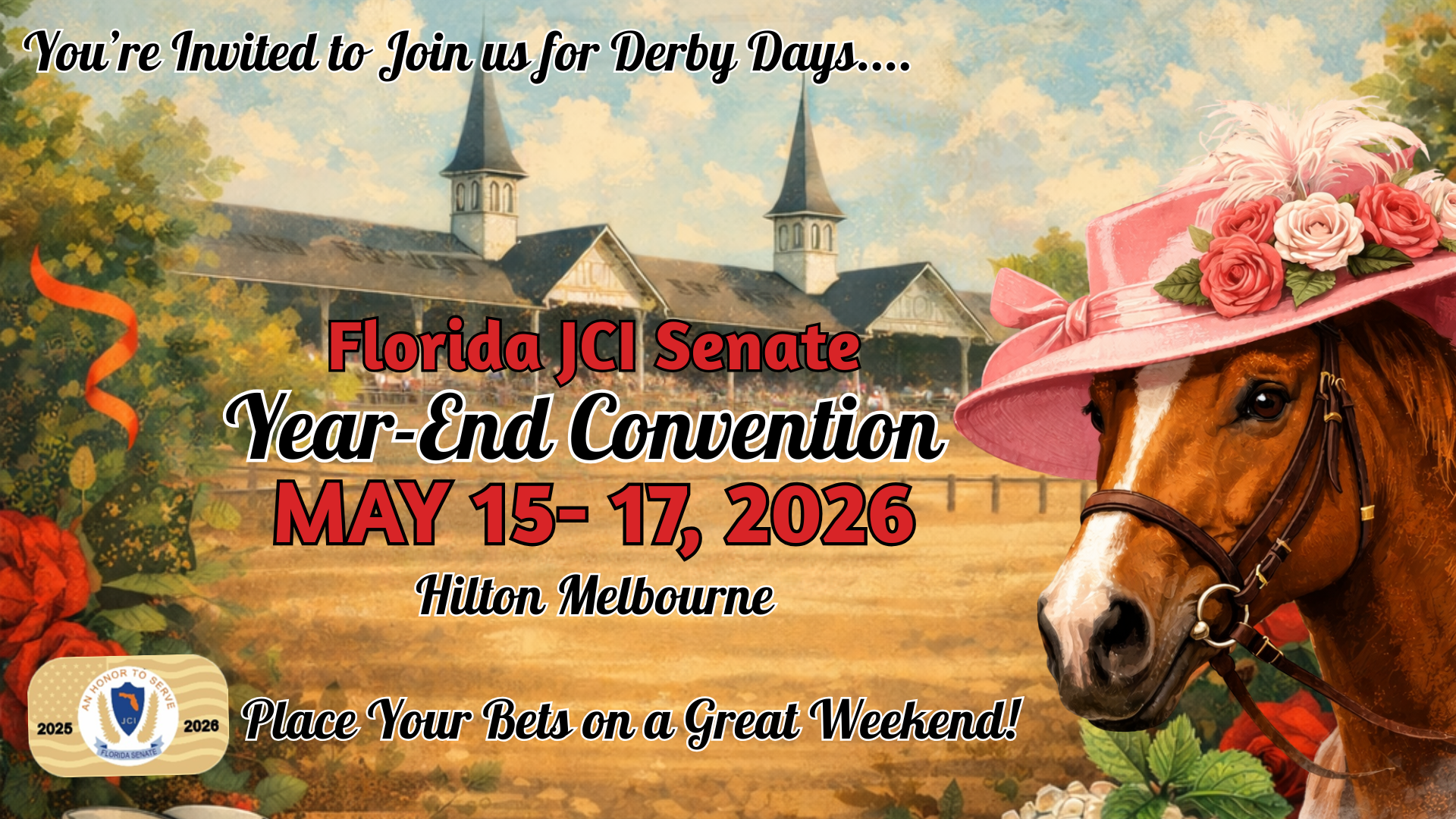 Join your fellow Senators for a weekend of fun, friendship, and celebration as we gather for the Florida JCI Senate Year-End Convention. We’ll celebrate another incredible year of service while enjoying great company, laughter, and a little Derby-style flair.
